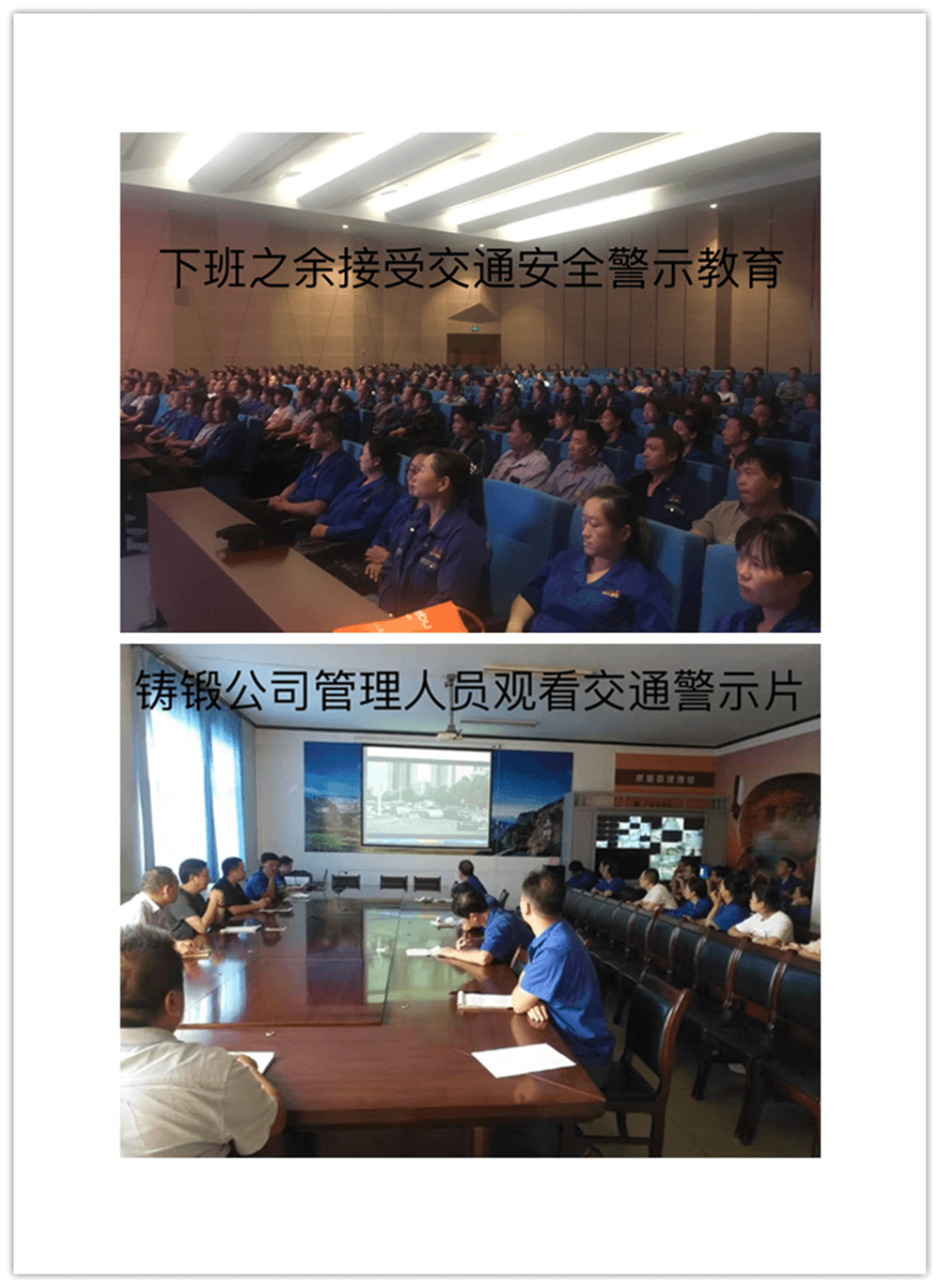 開(kāi)展警示片宣傳教育活動(dòng)。集團(tuán)公司按單位分三次組織1000余名員工觀看交通事故警示教育片,集團(tuán)公司子公司林鋼、鑄鍛也積極按照方案要求組織收看教育片,同時(shí)各單位還利用本部門的微信工作群進(jìn)行轉(zhuǎn)發(fā)收看,達(dá)到警示教育全面覆蓋之目的。