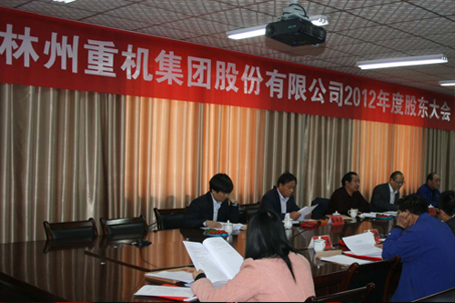 2013年4月16日下午14時(shí),林州重機(jī)集團(tuán)股份有限公司2012年度股東大會(huì)在公司一樓會(huì)議室以現(xiàn)場(chǎng)投票和網(wǎng)絡(luò)投票相結(jié)合的方式召開,參加本次股東大會(huì)的股東及股東代表共24人,代表公司股份328,572,401股,占公司有表決權(quán)股份總數(shù)的61.0356%,其中,現(xiàn)場(chǎng)出席會(huì)議的股東及股東代表14人,代表股份328,309,380 股,占公司有表決權(quán)股份總數(shù)的60.9867%;通過(guò)網(wǎng)絡(luò)投票方式參加會(huì)議的股東10人,代表股份263,021股,占公司有表決權(quán)股份總數(shù)的0.0489%。